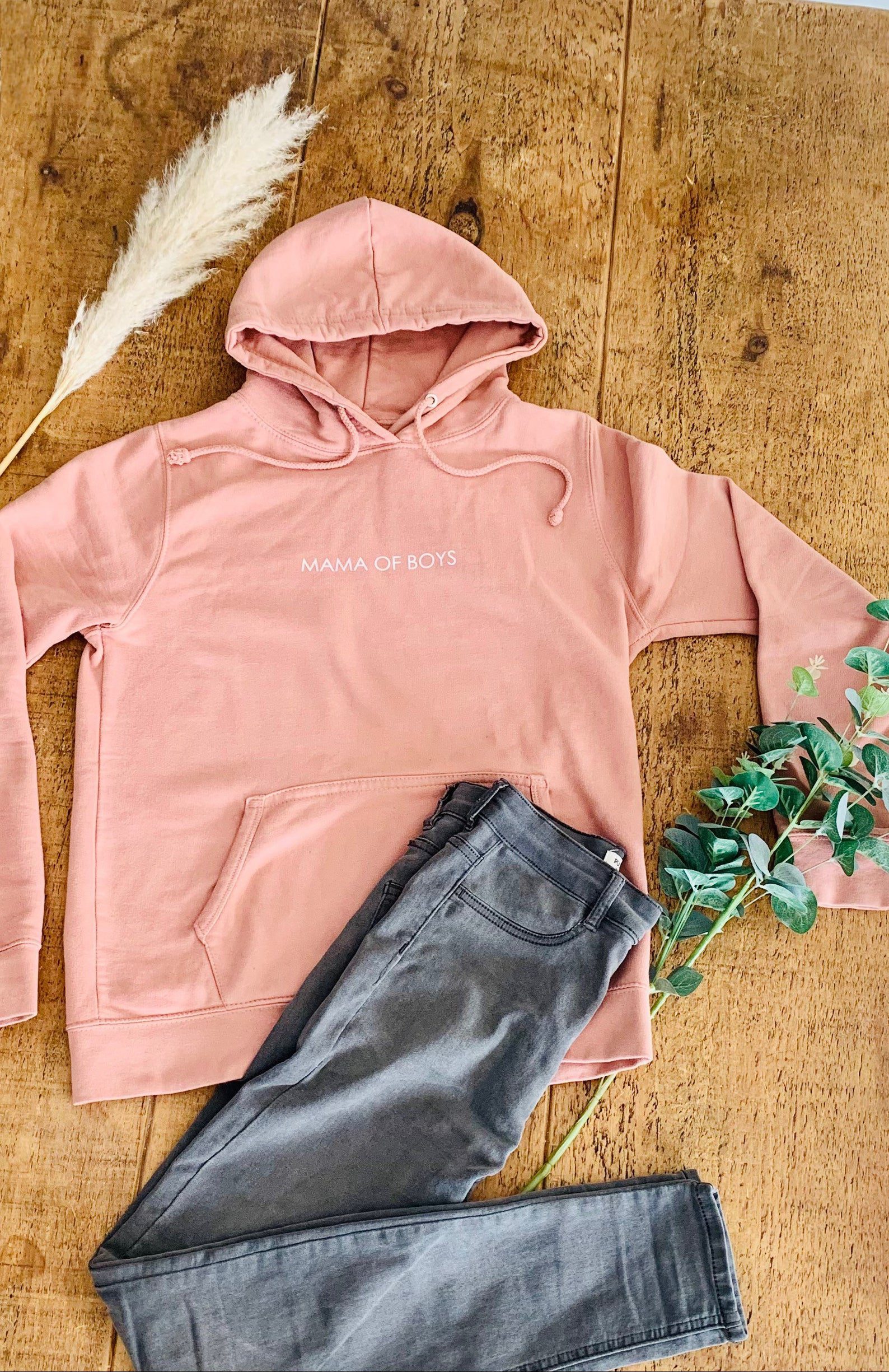 MAMA OF BOYS dusty pink hoodie.